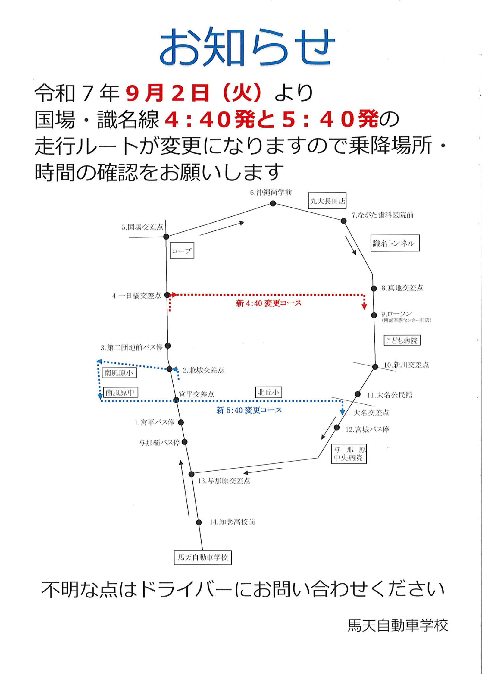 送迎バス【首里線】【知念線】の運行時間変更のお知らせ