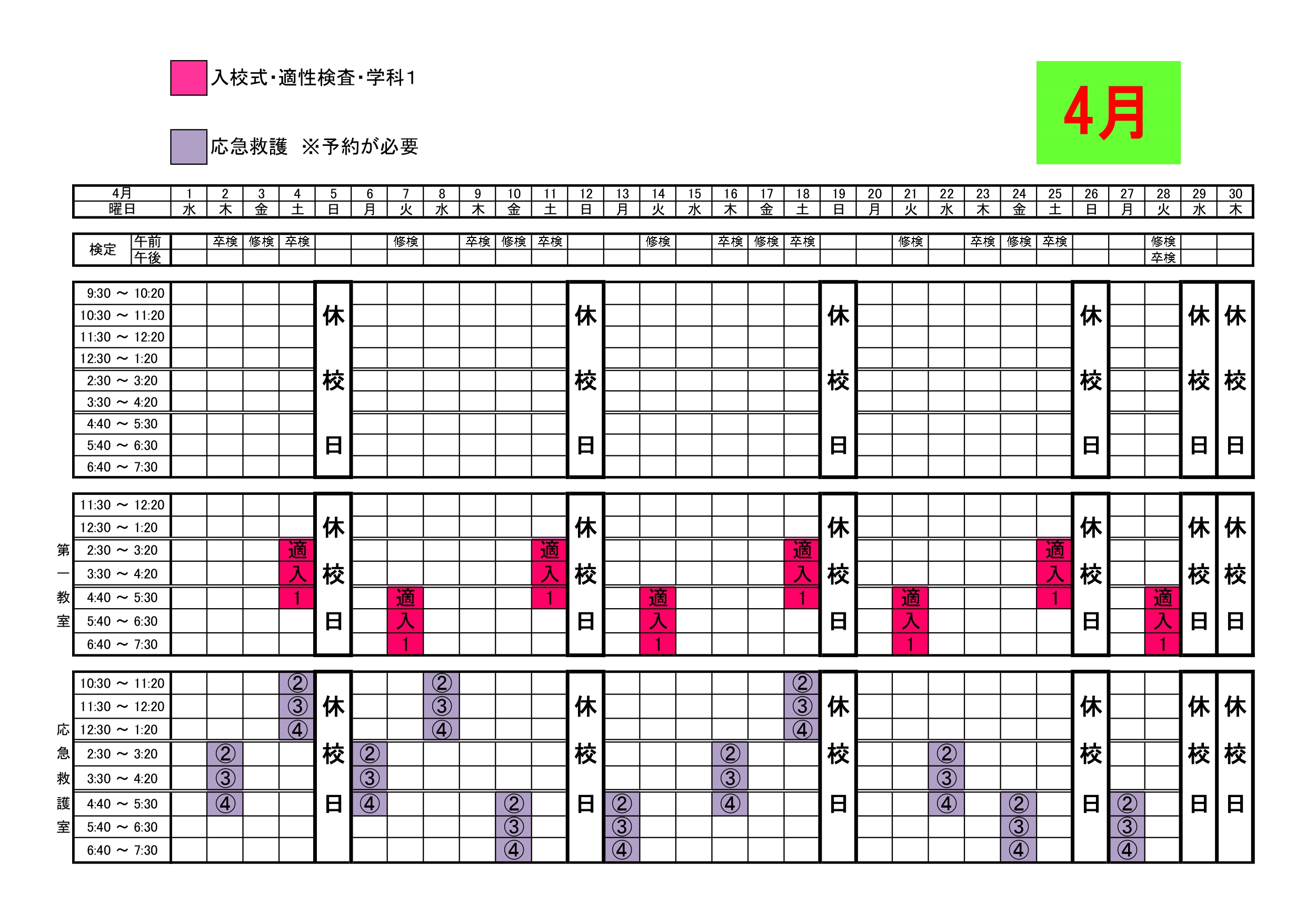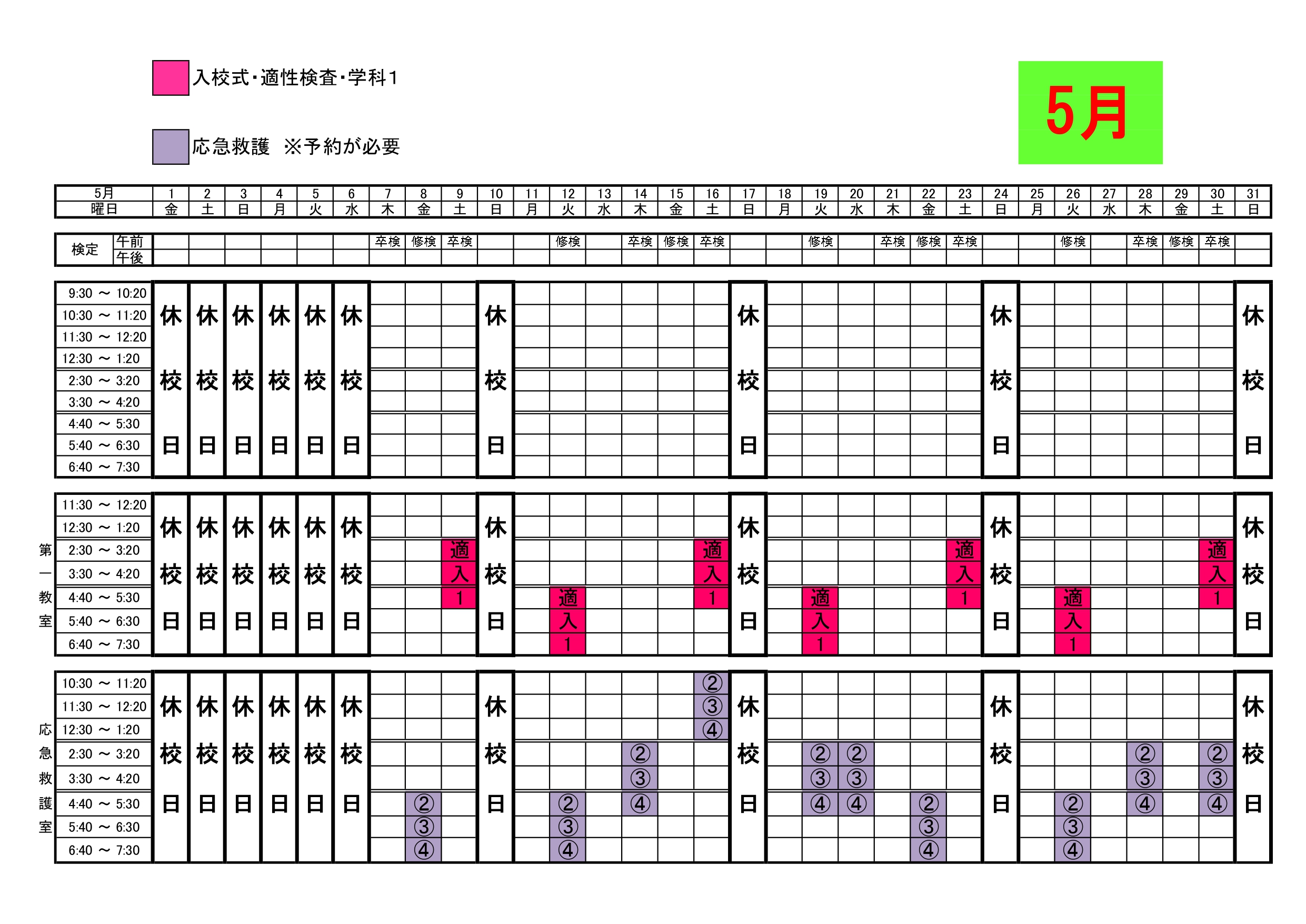 入校申込み時間変更のお知らせ